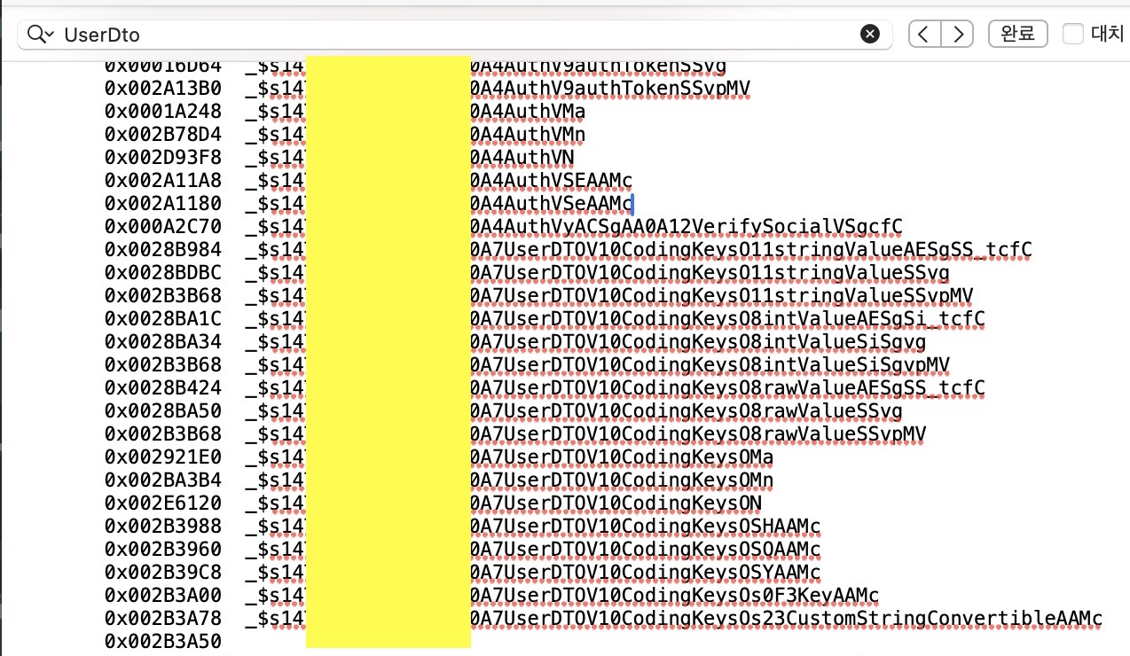 동일한 것을 `swift-demangle` 옵션을 붙여서 심볼을 demangle 시키면 훨씬 보기 쉬운 것을 확인할 수 있다.